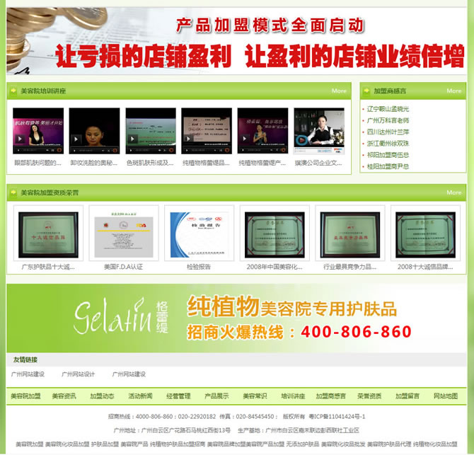 格蕾緹是以“安全、健康”為理念生產(chǎn)的無添加系列護(hù)膚品,是專業(yè)線美容院及醫(yī)療美容機(jī)構(gòu)專業(yè)品牌。廣州琪澳化妝品有限公司前身是廣州格潤化妝品有限公司,早在2008年,就在北京人民大會堂和北京釣魚臺國賓館獲得“2008年中國美容化妝品行業(yè)最具競爭力品牌”、“2008年中國美容化妝品十大誠信品牌”、“2008 年美容美發(fā)突出創(chuàng)新單位”等獎項。